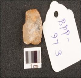 | Description / विवरण | Quartz, waste flake, bulb of percussion on dorsal side irregular shape, rugged surface. |