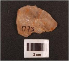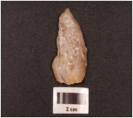 | Description / विवरण | Point made on quartz with distal end broken prepared platform and flake scars. |