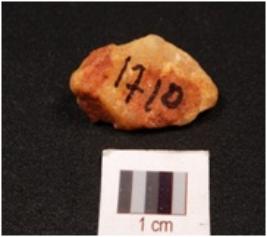 | Description / विवरण | A flake made of quartz stone, cortex on surface, flake scars on surface, uneven and surface is smooth. |