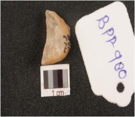 | Description / विवरण | Quartz, lunate, sleeply blunted back, rugged surface. |