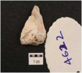 | Description / विवरण | A side scraper made on and end struck chert flake, visible cortex at dorsal side, single ridge, prepared platform, diffused bulb at ventral side, visible used wear marks. |
