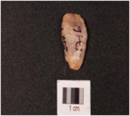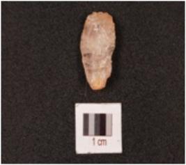 | Description / विवरण | A quartz stone scraper mid ridge on dorsal ventral is smooth with diffused bulb and use wear marks on edge. |