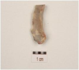 | Description / विवरण | A side scraper made on a side struck chert flat visible cortex at ventral side, 2 flake scars on dorsal side, visible used wear marks. |