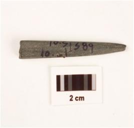 | Description / विवरण | A stone point, circular section, polished surface pointed one end and another end broken. |