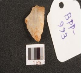 | Description / विवरण | Quartz, waste flake with irregular shape, rugged surface. |