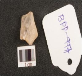| Description / विवरण | Quartz, waste flake, with irregular shap and rugged surface. |