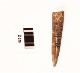 | Description / विवरण | A fragment of soft stone point with round pointed end, smooth polished surface, partly broken from one end and round in section. |