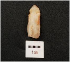 | Description / विवरण | A Quartz flake with flake scars and use wear marks on edges. |