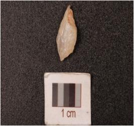 | Description / विवरण | A fragment of a probable blade of quartz, made on flake, single ridge, pointed broken ends. |