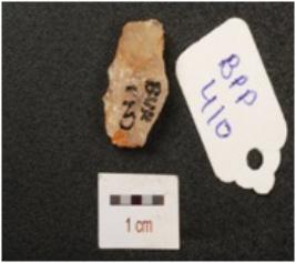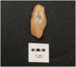 | Description / विवरण | A quartz flake with use scars marks on edges. |