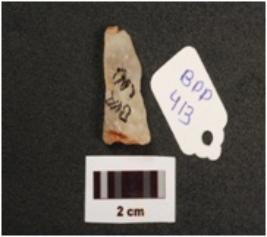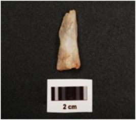 | Description / विवरण | A quartz flake with prepared platform on proximal end and wear marks on edge. |