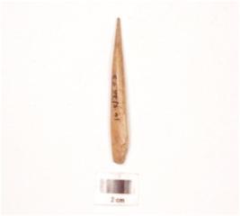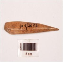 | Description / विवरण | Bone point with a polished surface, one side slightly concave due to the polishing of some small object pointed at one end and broad at other. |