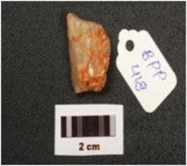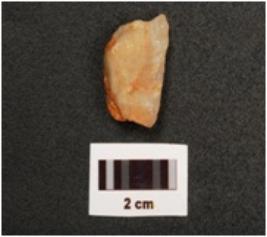 | Description / विवरण | A quartz waste flake with cortex on dorsal and blunt edges. |