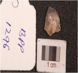 | Description / विवरण | A micro side scraper, prominent bulb at distal end, prepared platform, uneven dorsal surface. |