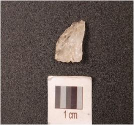 | Description / विवरण | A side scraper, 3 ridges on surface, prominent bulb at ventral surface, prepared platform. |