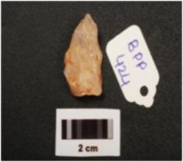 | Description / विवरण | A quartz flake with flake scars and use wear marks on edges. |