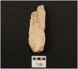 | Description / विवरण | A blade made on an end struck flake of chert, prepared platform, prominent bulb at ventral side, single ridge, used wear marks visible. |