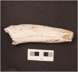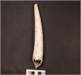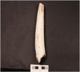 | Description / विवरण | Horn core with a polished surface, both the ends are broken, porous interior, cracks visible on surface. |