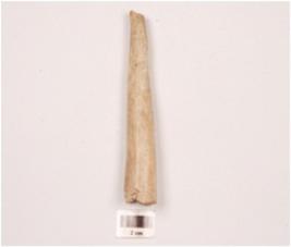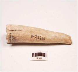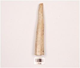 | Description / विवरण | Horn core with one pointed end, other side broken, polished surface, porous interior. |
