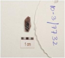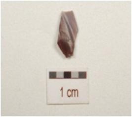 | Description / विवरण | A chert flake with smooth surface, flat section and broken along one end. |