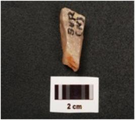| Description / विवरण | A fragment of a quartz flake, with prepared platform and blunt edges. |