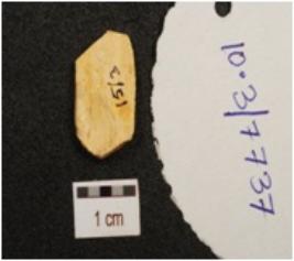 | Description / विवरण | A chert end struck flake with prepared platform, diffused bulb on ventral, flattened section and broken along distal end. |