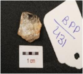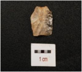 | Description / विवरण | A Quartz side scraper with use wear marks along one lateral edge and irregular shaped. |