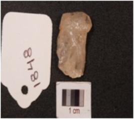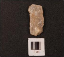 | Description / विवरण | A side scrapper made on quartz with flake scars on the dorsal side, prepared platform and diffused bulb, irregular along the cutting edges. |