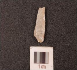 | Description / विवरण | A fragment of on end scraper, single ridge, uneven dorsal and ventral surface. |