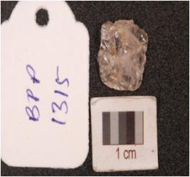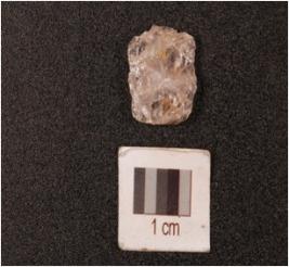 | Description / विवरण | Fragment of single ridge blade, parallel sided, uneven dorsal, surface, diffused bulb on ventral surface, used wear marks. |