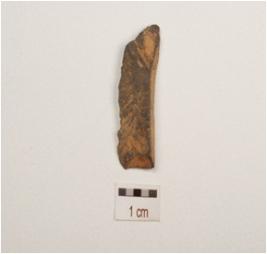 | Description / विवरण | A chert blade with single ridge on dorsal, triangular in section and use wear marks on cutting edge. |