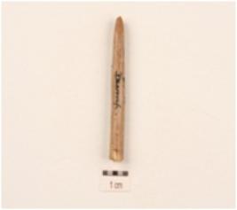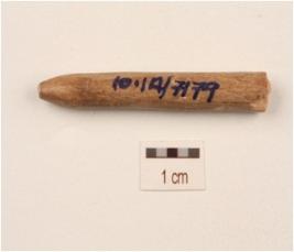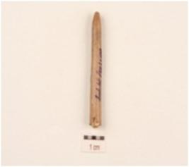 | Description / विवरण | A bone point, polished, surface, pointed end, broken upper end, smooth surface and circular cross section. |