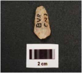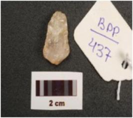 | Description / विवरण | A quartz end struk flake, use wear marks on one lateral edge and diffused bulb on ventral. |