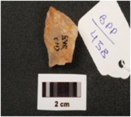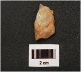 | Description / विवरण | A Quartz flake with flake scars slightly pointed both ends and rough surface. |
