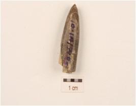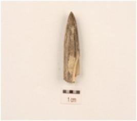 | Description / विवरण | Fragment of a bone point, polished surface, intact tip, broken one end and circular cross section. |