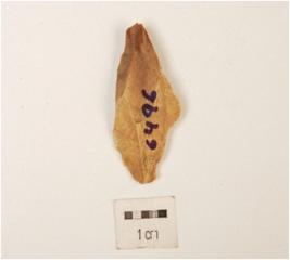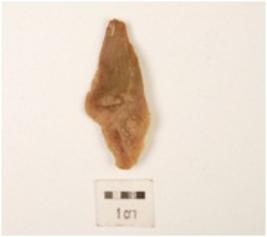 | Description / विवरण | A flake made by chert, flake scars and cortex on surface, prepared platform on the proximal end, use wear marks on the cuttng edges. |