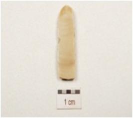 | Description / विवरण | A backed balde made on chert, end struck flake, unprepared platform, bulb on ventral surface, blunted one side, sharp cutting edge, use wear marks on cutting edge two prominent ridges on dorsal surface and trapezoidal in section. |