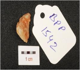 | Description / विवरण | A scraper made on quartz. Prepared platform on proximal end. Diffused bulb on ventral side. Use wear mark along cutting edges. |