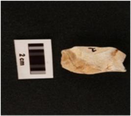 | Description / विवरण | Chert flake with flake scars on both sides and smooth surface. |