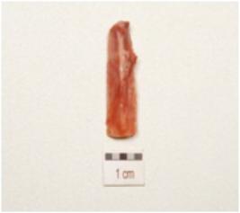 | Description / विवरण | A parallel sided blade made on chert, end struck flake, prepared striking platfrom on proximal end, diffused bulb on ventral surface, sharp cutting edges, use wear marks on cutting edges trapezoidal in section. |