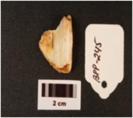| Description / विवरण | Chert flake, irregular shape, blunte edges, weahtered condition. |
