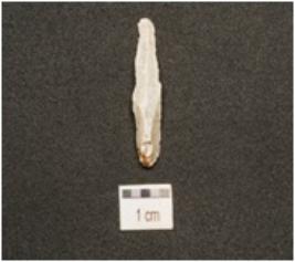 | Description / विवरण | A parallel sided blade made on chert, end struck flake, diffused bulb on ventral surface, sharp cutting edges, use wear marks on cutting edges and triangular in section. |