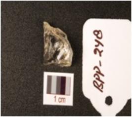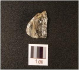 | Description / विवरण | Crystal fragment of a scraper on blade core, blade scars on the dorsal side, anterior part is pointed and posterior part broad, mark on the cutting edges. |