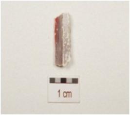 | Description / विवरण | A parallel sided chert blunted blade with single ridge on dorsal, irregular section and broken along both ends. |