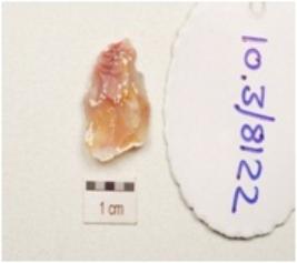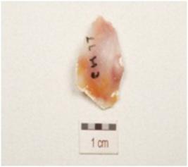 | Description / विवरण | A scraper made on chert, side struck flake, ,prominent bulb on ventral surface, retouched on cutting edge, flake scars on dorsal surface and plano convex in section. |