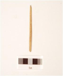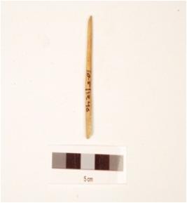 | Description / विवरण | Fragment of bone point, broken from both ends, round and smooth surface, polished, brown in colour. |