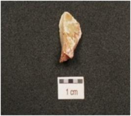 | Description / विवरण | A utilized flake made on chert, end struck flake, bulb absent use wear marks on cutting edge, flake scars on one surface and triangular in cross section. |