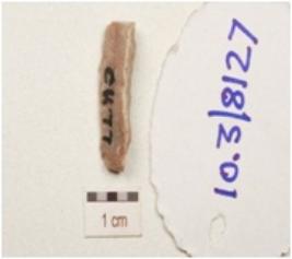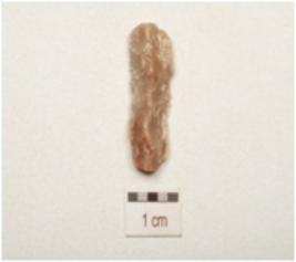 | Description / विवरण | A utilized flake made on chert, end struck flake, use wear marks on cutting edge, flake scars on one surface and triangular in cross section. |