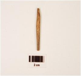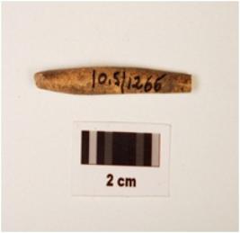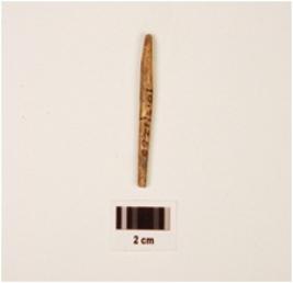 | Description / विवरण | Fragment of bone point, broken both ends oval end, round in shape, thin in character and polished surface. |