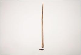 | Description / विवरण | A bone needle broken into two pieces , well polished smooth surface, one end pointed other end flat with a perforation, circular cross section, brown in colour. |